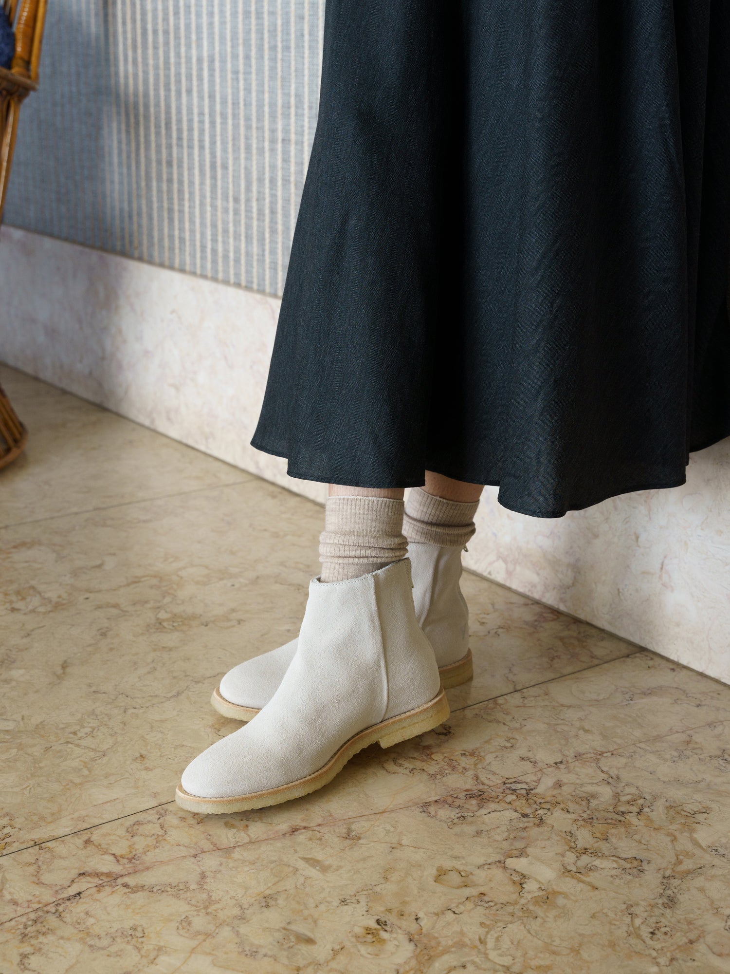 The Villa, JAK's first take on a unisex and minimalistic ankle boot. The highest grade of suede uppers paired with natural rubber crepe sole and a back zipper. Perfect for the daily routines in and out of the city. Blake stitched and made in Portugal.